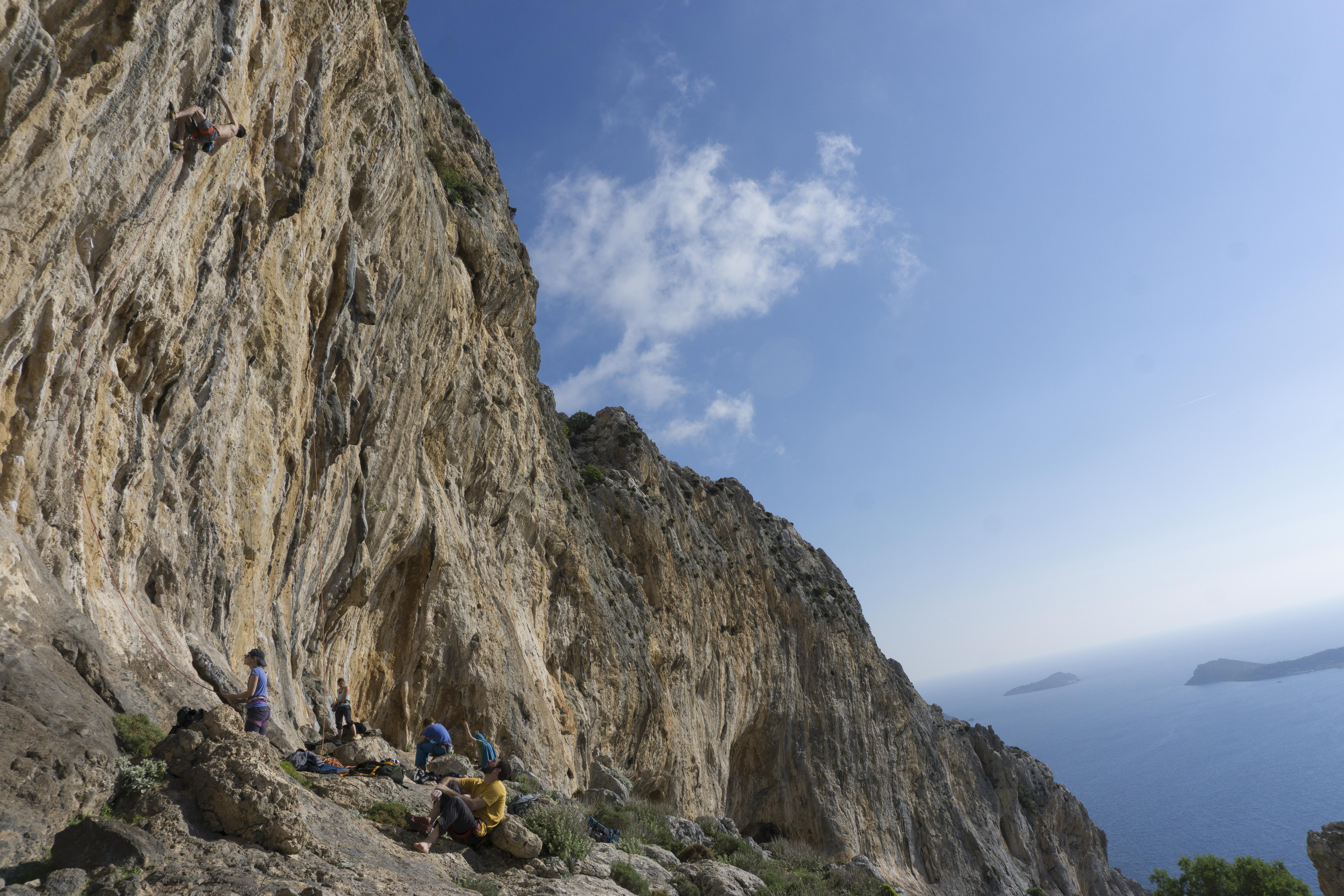 Jeremy climbing over the Aegean on ‘Tonge’ (7a+/5.12a) at Local Freezer. I believe Jeremy sent this thing in a couple of goes.