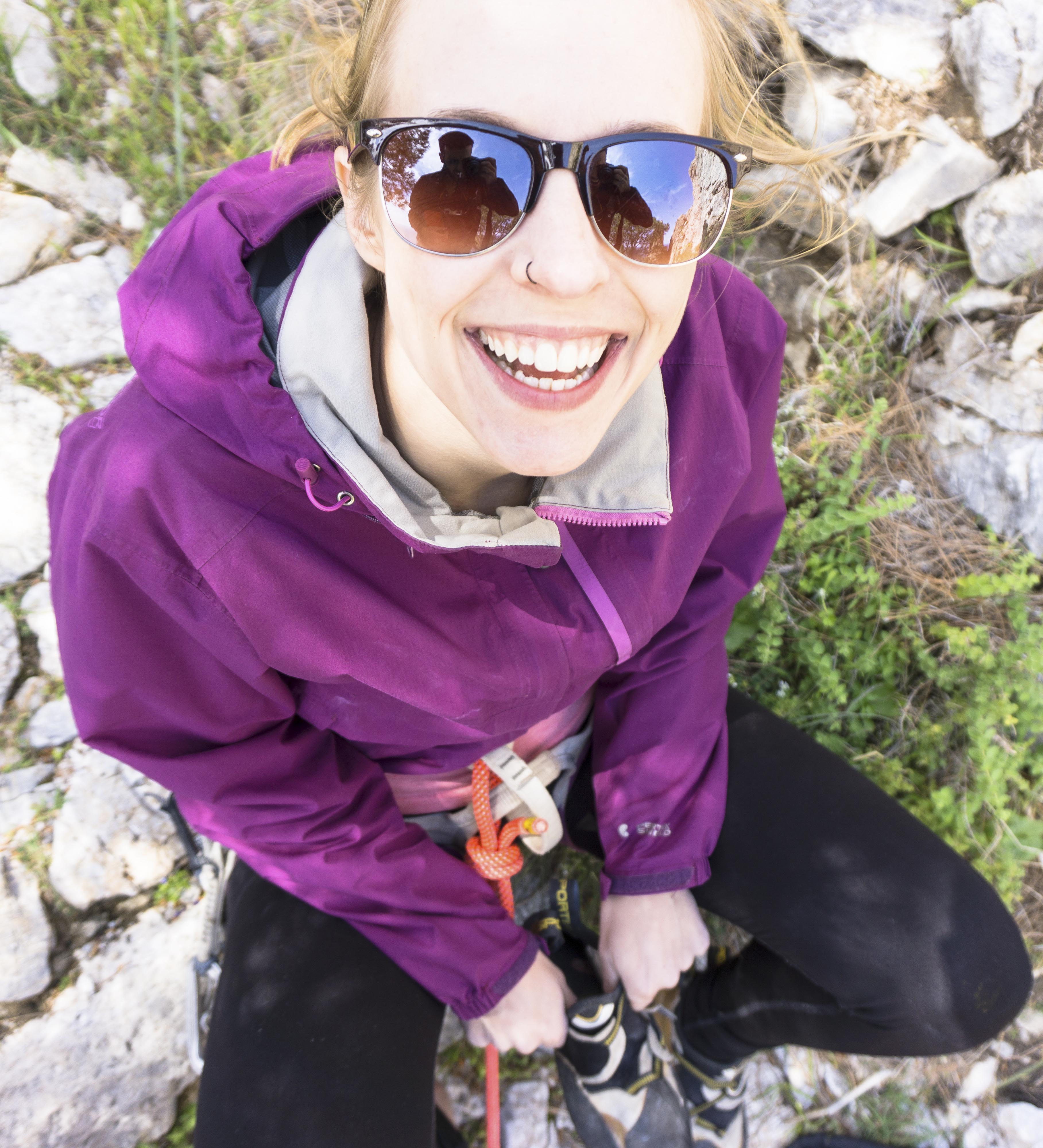 Katie on ‘Blu’ (6a/5.10b) on Afternoon Wall. Nicole also climbed this route, terrifying everyone on the ground by clipping runout bolts after they were already beneath her knees. While we were all internally freaking out, she was cruising.
