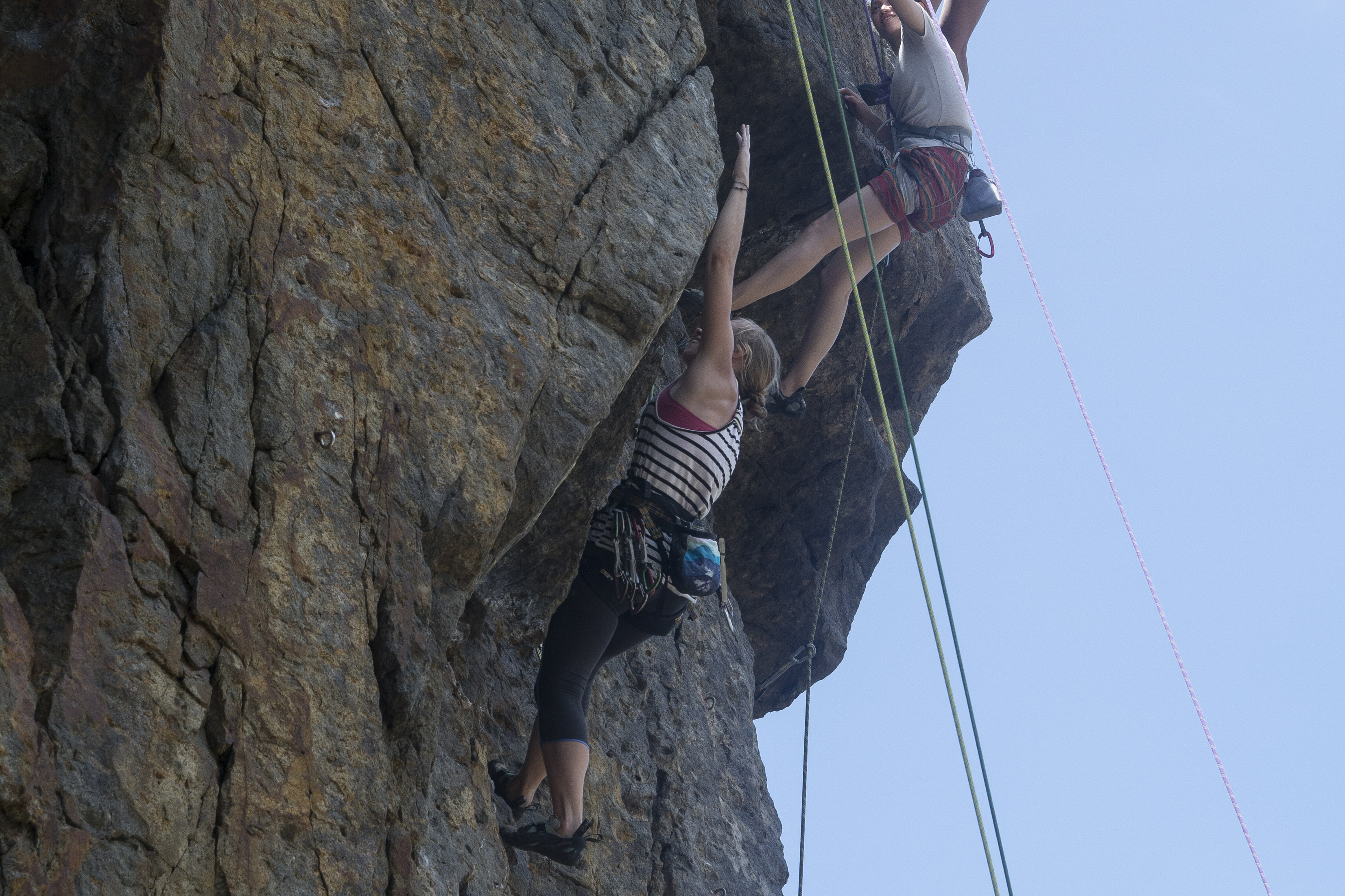 Katie not so psyched for climbing after seeing all of the huge spiders