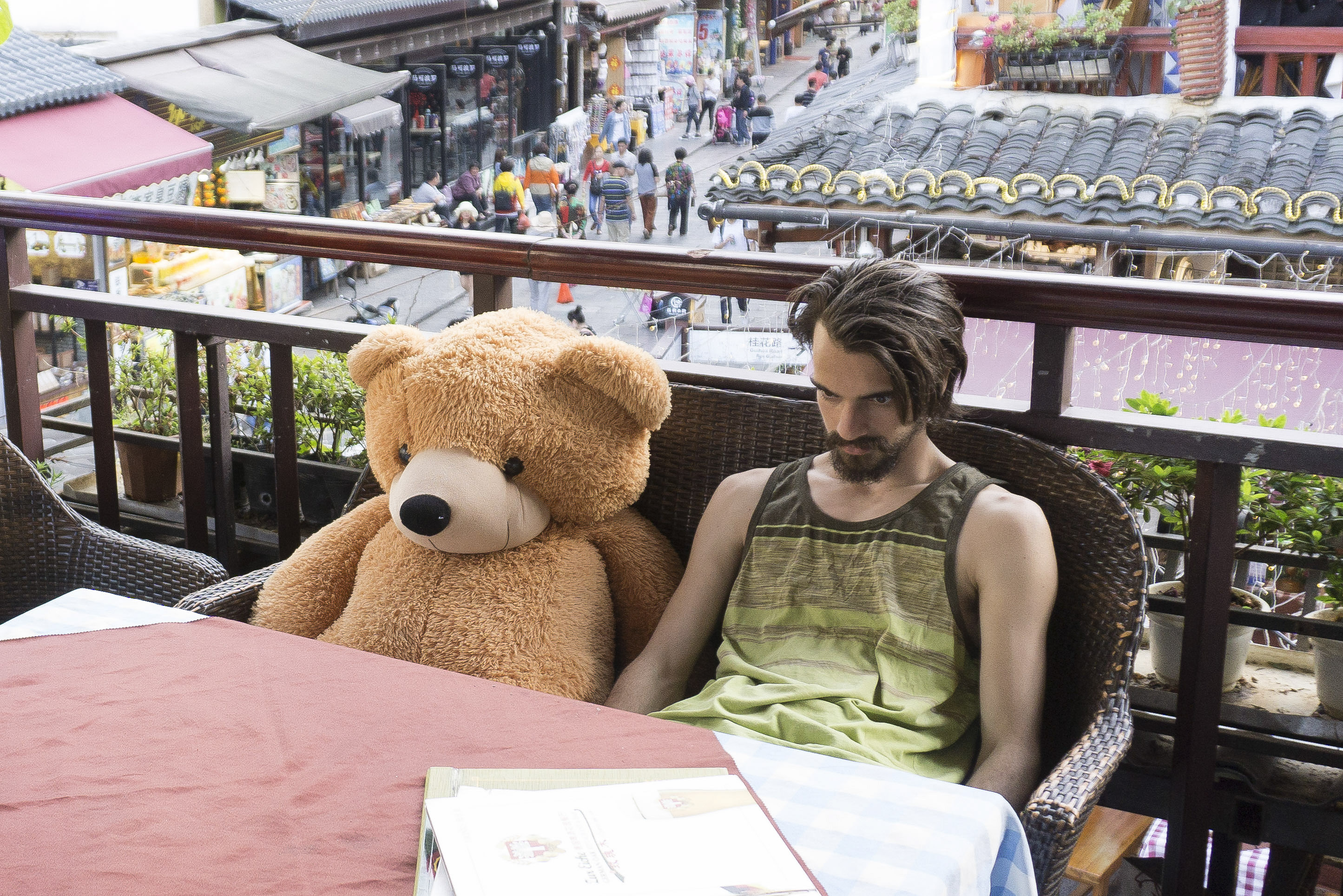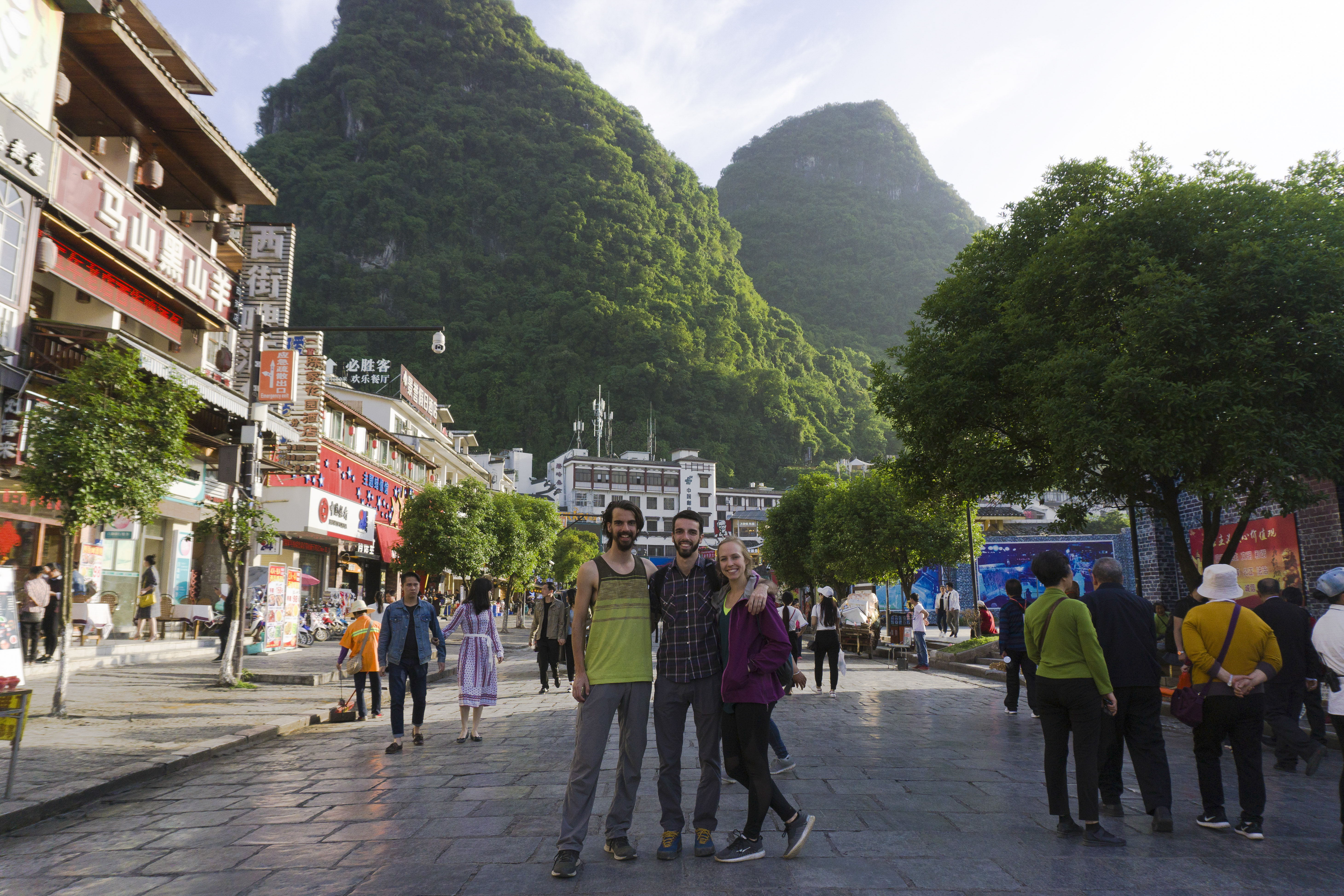 Crew on Yangshuo walking street, David came to join us, because of course.