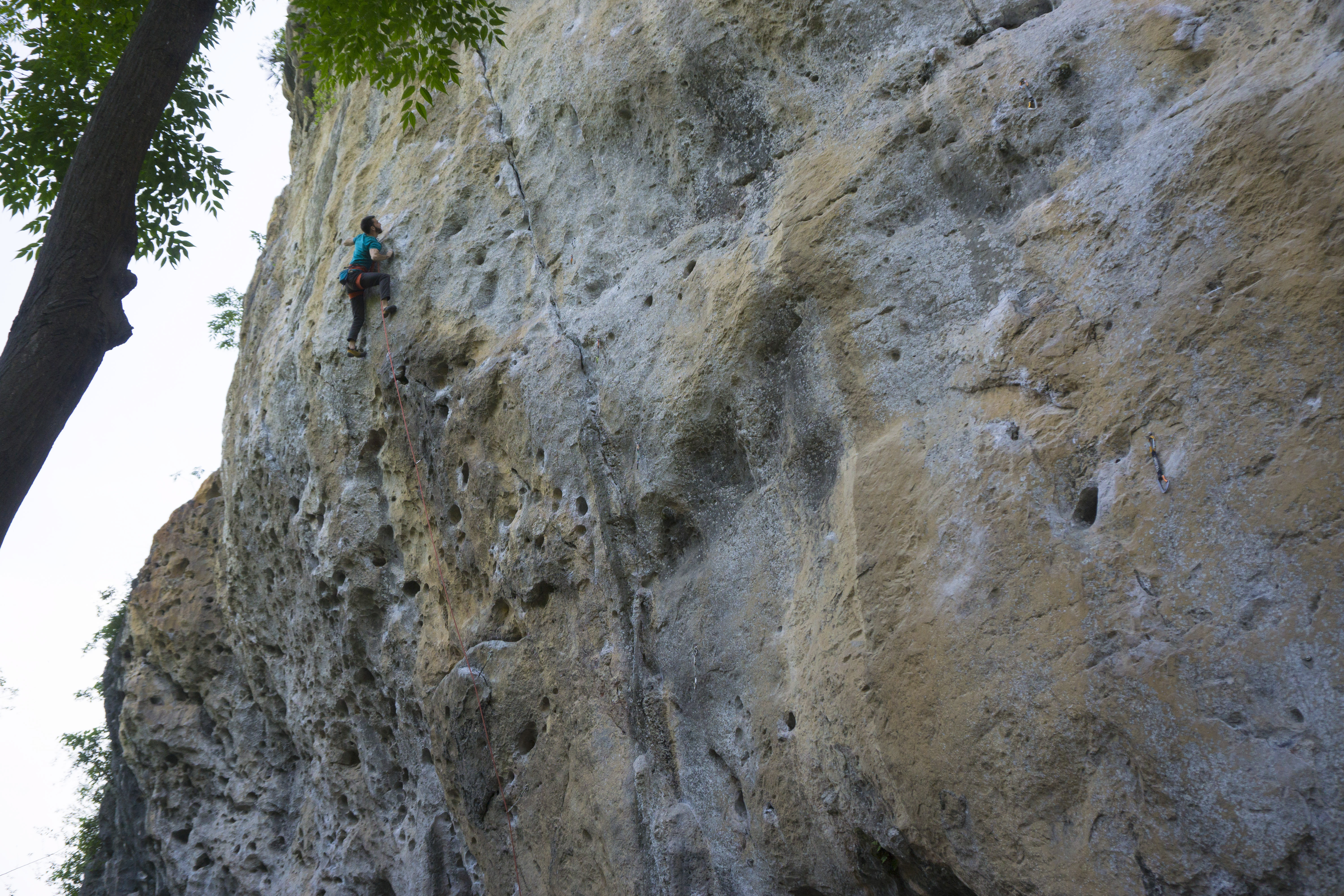David climbing ‘Hanging in the Balance’ (5.11a) at The Egg